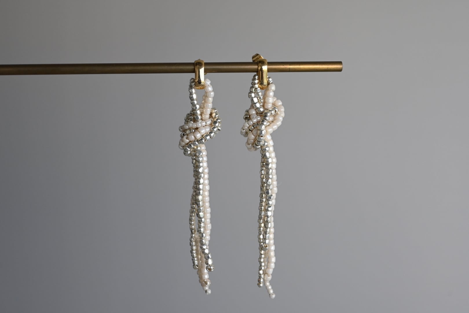 大小2色のビーズが揺れるモードな印象のピアスです。