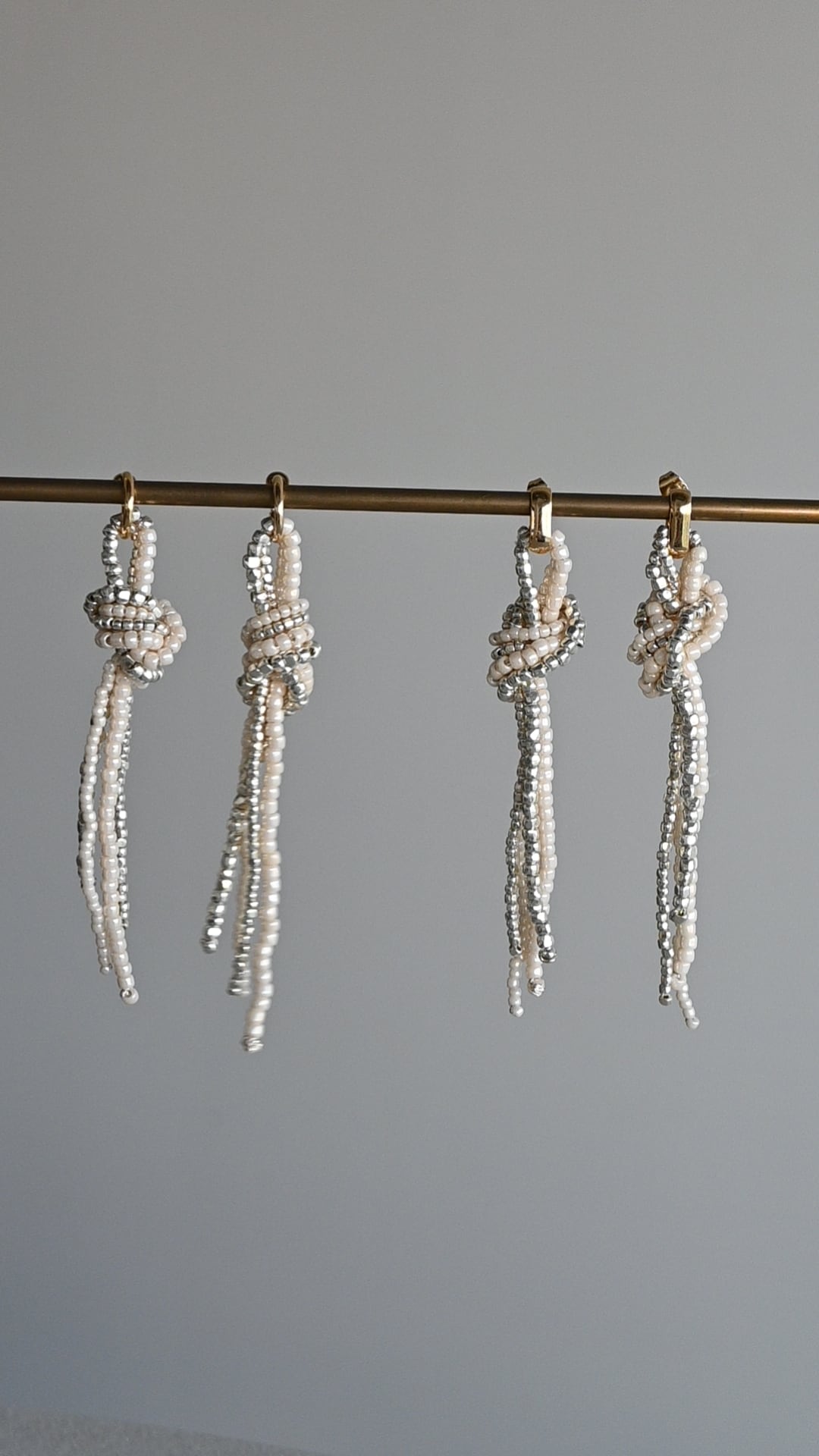 大小2色のビーズが揺れるモードな印象のピアスです。