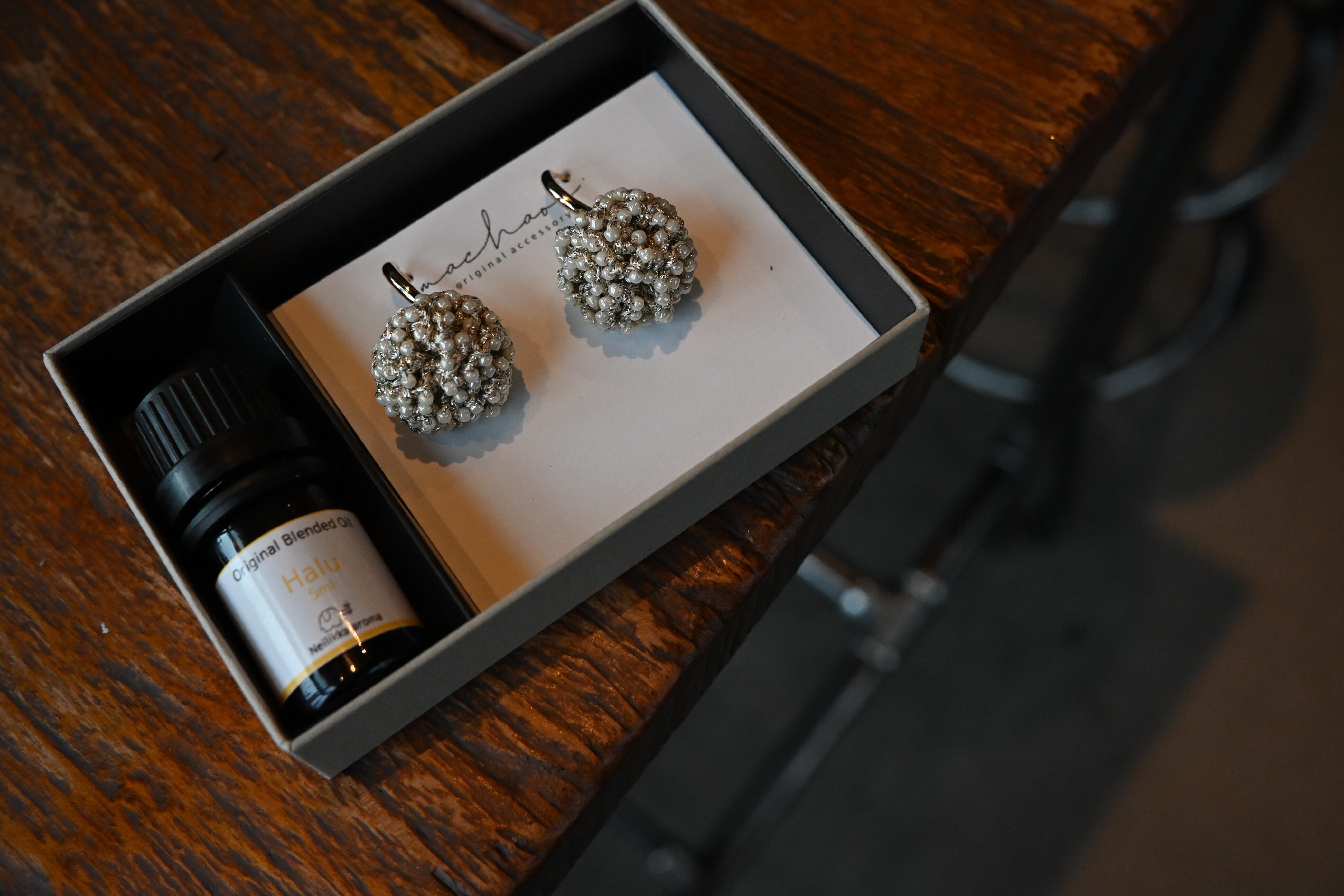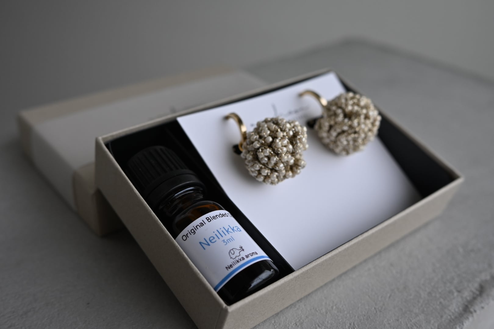 空間アロマデザイナー Neilikkaさんとのコラボレーションから生まれたアロマピアスです。