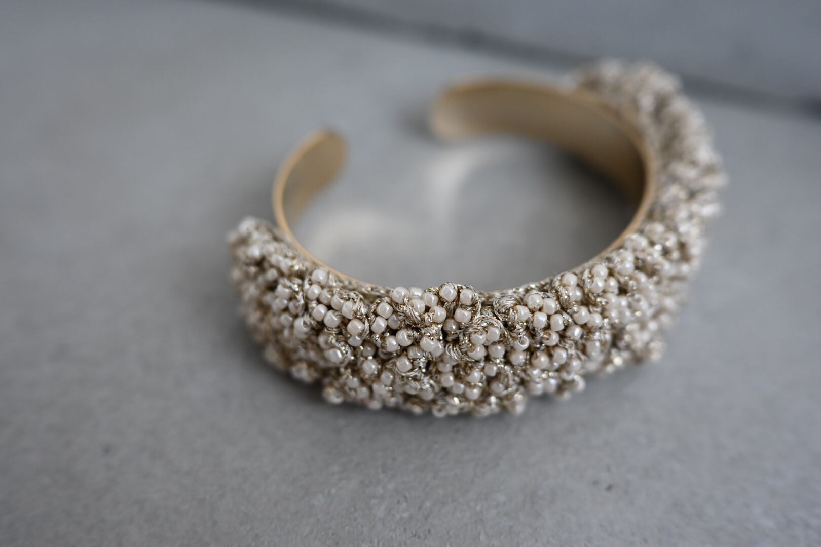 金糸でビーズをひとつひとつ丁寧に編み込みました。