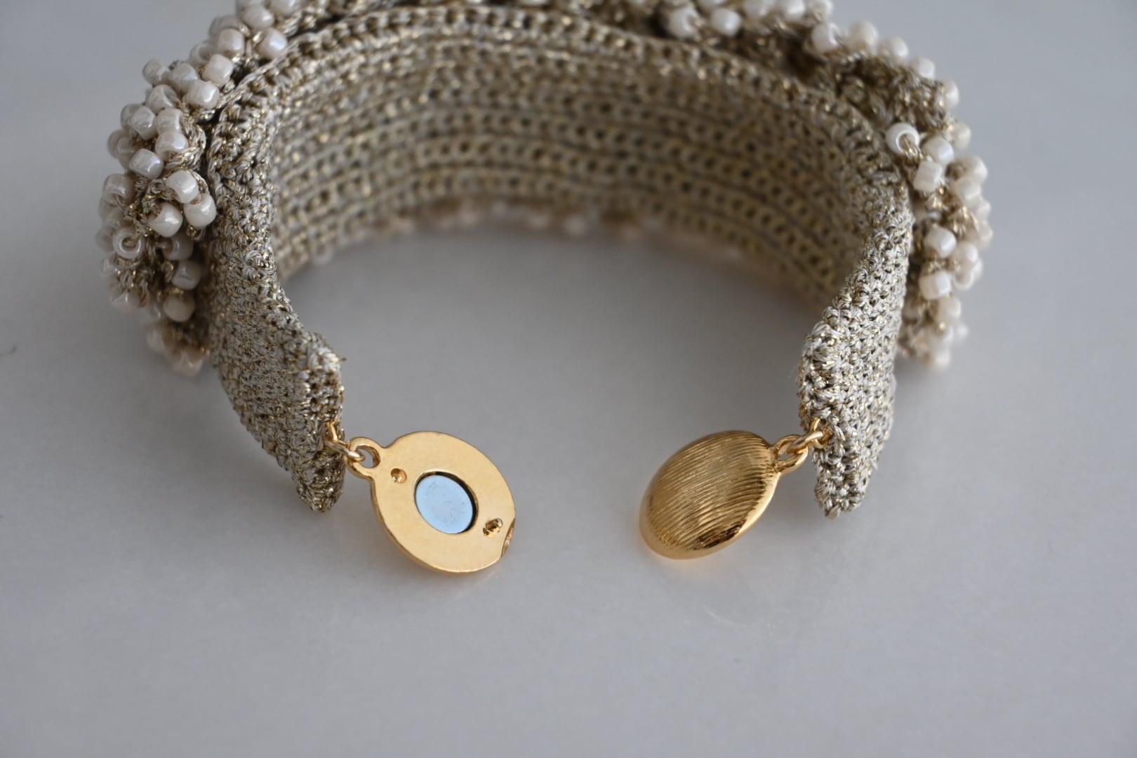 金糸で沢山のビーズをひとつひとつ丁寧に編み込みました。